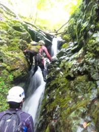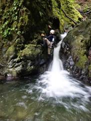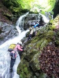 3段12mの滝と大滝2段18mでロープを出していただいた。長友さんはテクニカルなムーブでへつりも難なく突破、大塚さんは安定した登りでロープを出すまでもない様子。私も奥多摩で沢デビューしたころよりは少しは安心して登れるようになったなあと思いながら、終始楽しく登る。